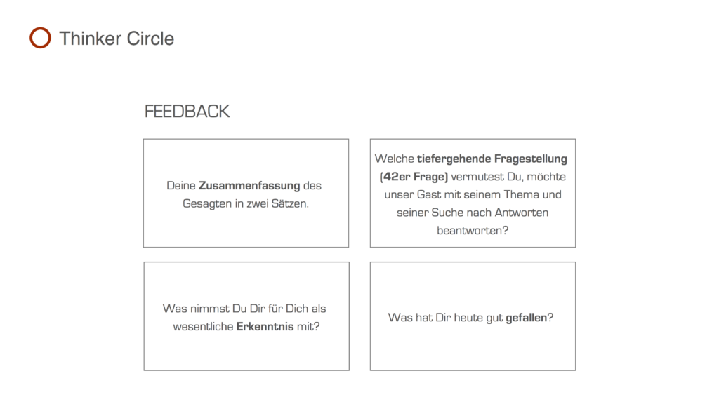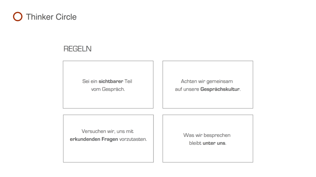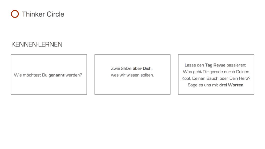 - „Bist Du Begleitperson oder Denker*in des Thinker Circles?“